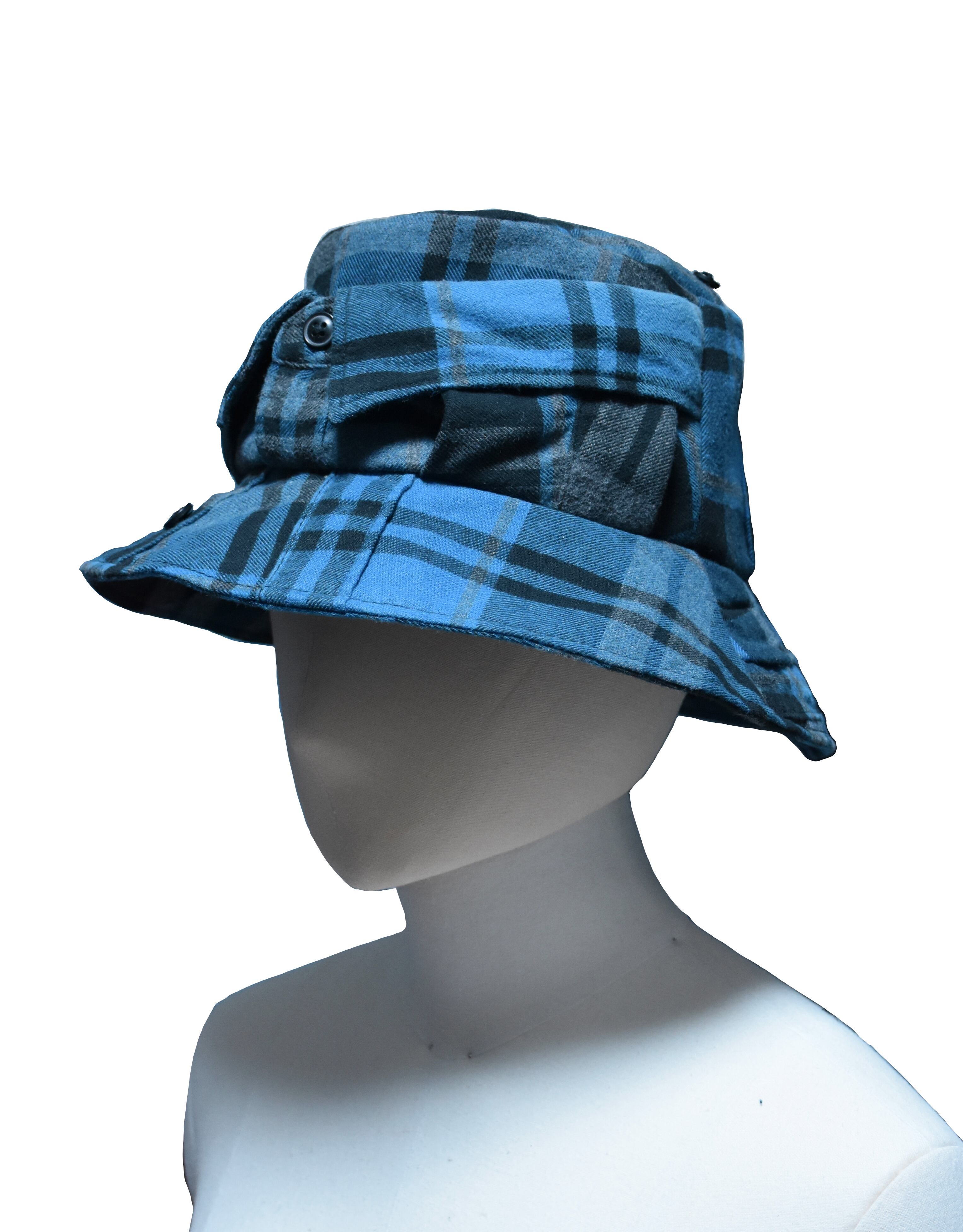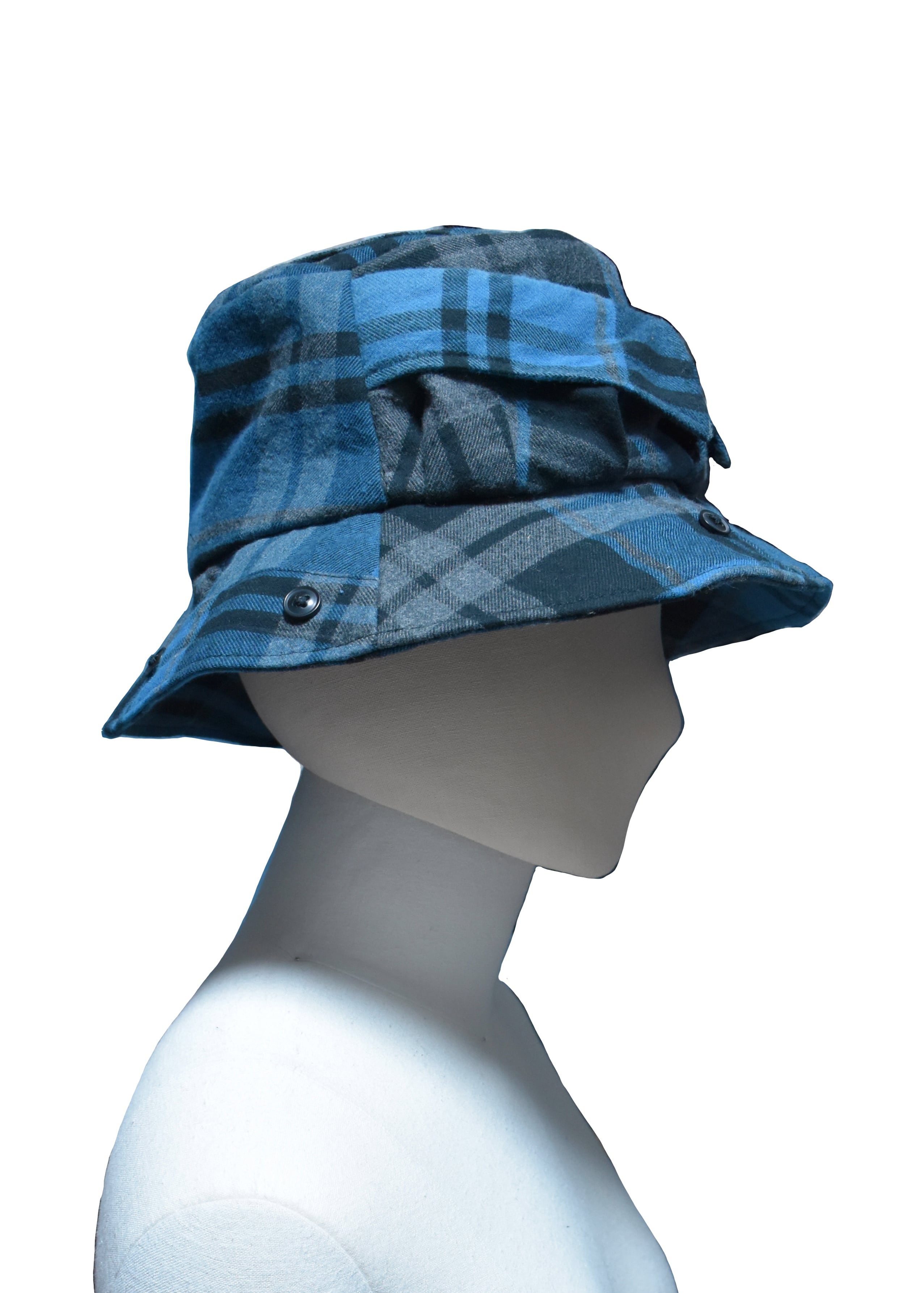 ネルシャツリメイクバケットハット/バケハ 解体変形ハット