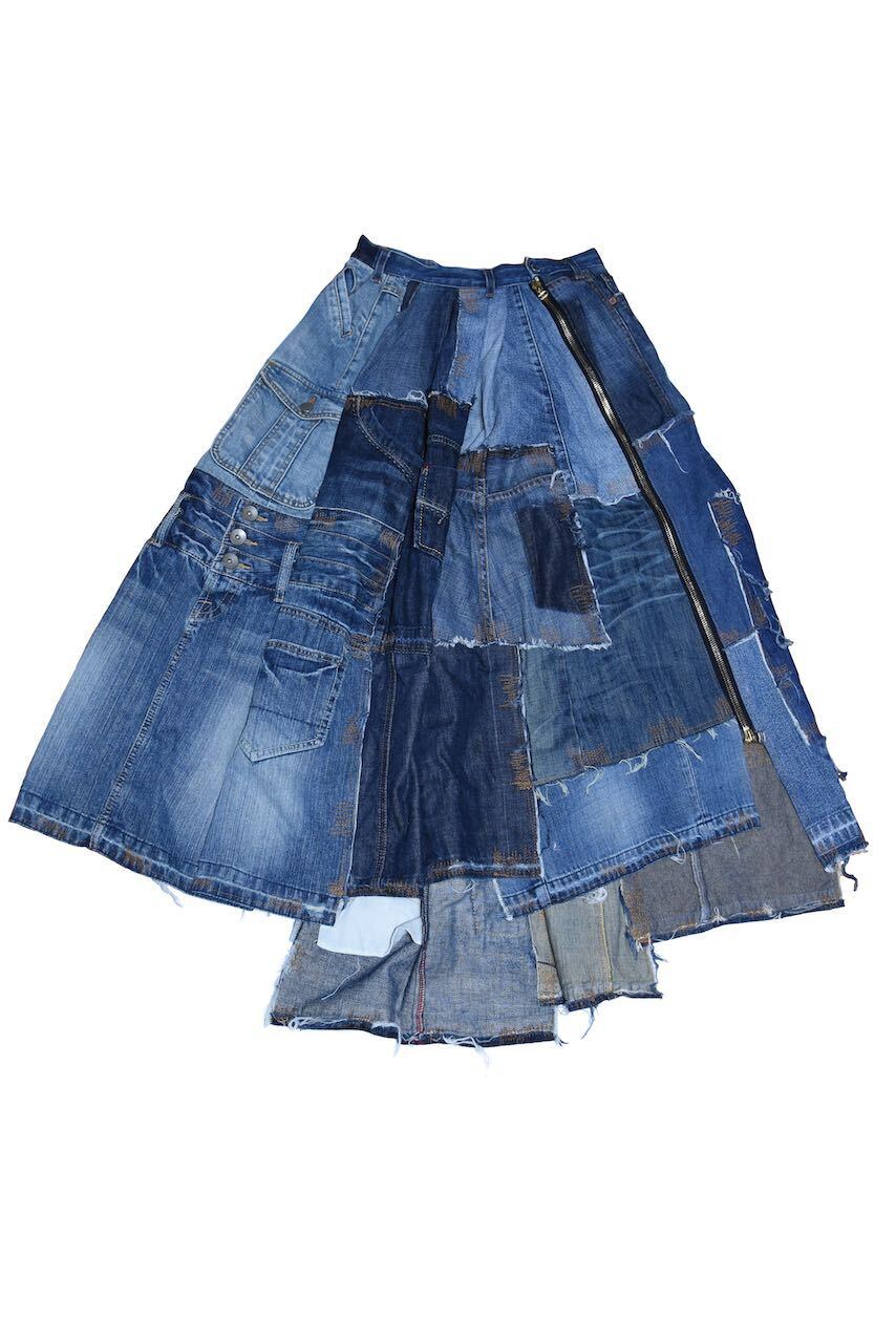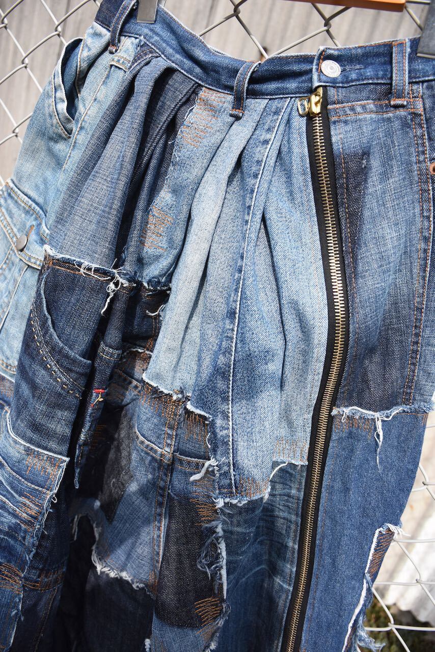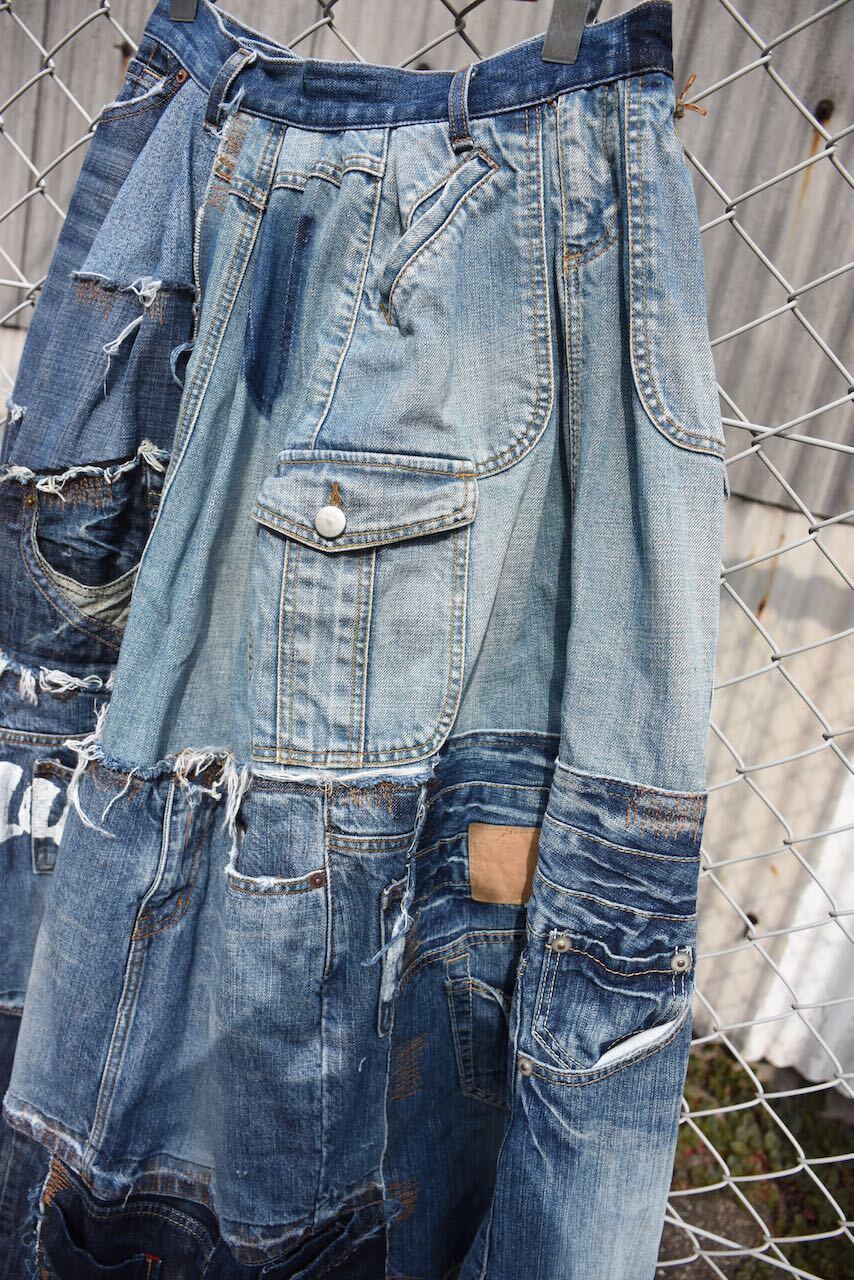 デニムパンツを解体して作ったパッチワークアシンメトリースカート